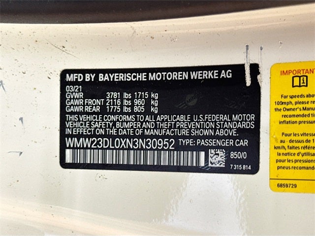 VIN: WMW23DL0XN3N30952