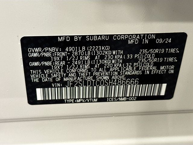 - Wheels: 19" x 7.5 J Dark Gray Aluminum-Alloy -inc: machine finish and black wheel center cap w/Subaru 6 star logo